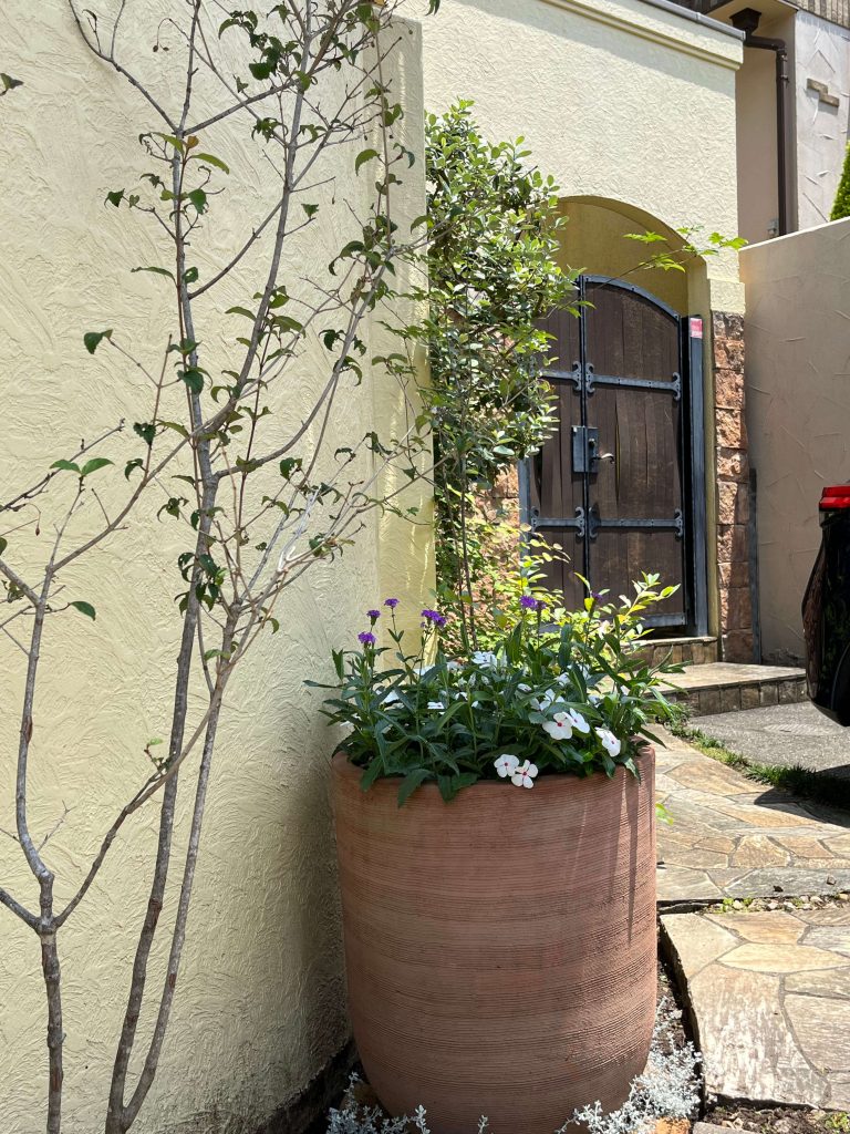 庭を無くして30年。寄せ植えを楽しむ中でシンプルな鉢植えのシンボルツリーに興味を持ち、One Seedさんに相談。リビングから緑が見える落葉樹や、玄関前の窓4箇所に異なる木を配置し、鉢のデザインやキャスター付き仕様まで細部にこだわりました。季節ごとに変化する木々の彩りが暮らしに新たな楽しみをもたらしてくれます。(横浜市緑区・S邸)