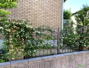 こちらのお庭の花壇は小さなスペースでありながら、道路から一段高いところにあり、