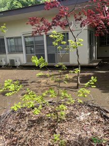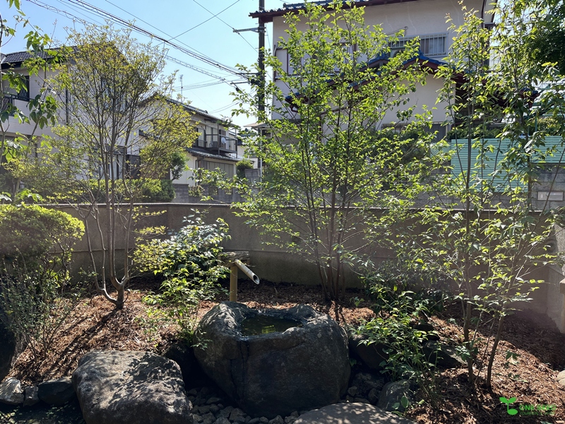 抜く木を選定し、新たに木を植え、草花を整えました。