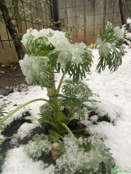 見に行くとやはりチドリソウは、雪の重み耐えていました!
