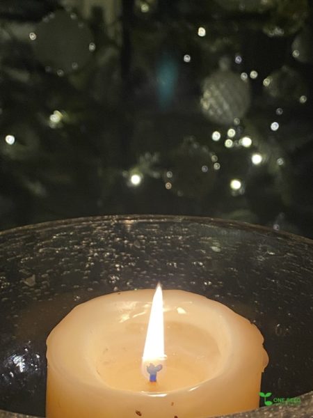 暗闇に静かに灯るロウソクの火を
