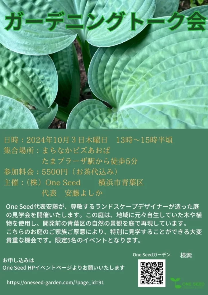 終了いたしました 横浜市青葉区 庭 ガーデンデザイン ガーデニング10月3日 13時ー15時半頃集合場所:まちビズあおば(横浜市青葉区たまプラーザより5分)※30分ほど... -